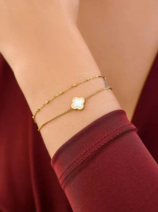 Double Bracelet, Clover, Gold