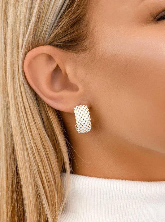 HOOP EARRINGS, GREEK PATTERN WITH CRYSTALS, GOLD S208458Z00