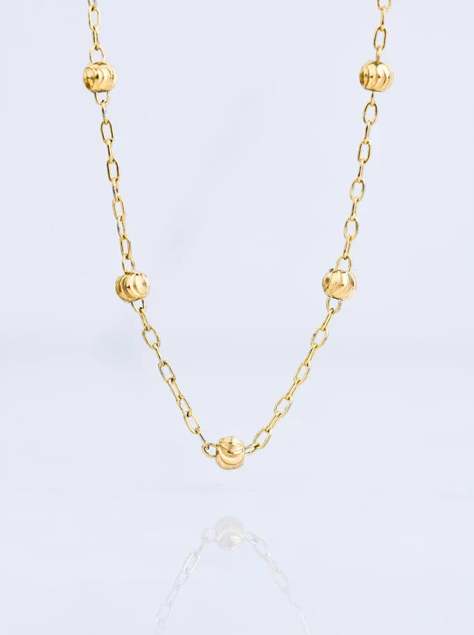 A jewelry set consisting of a milled ball necklace and snowflake hoop earrings, made of surgical steel with a gold coating.