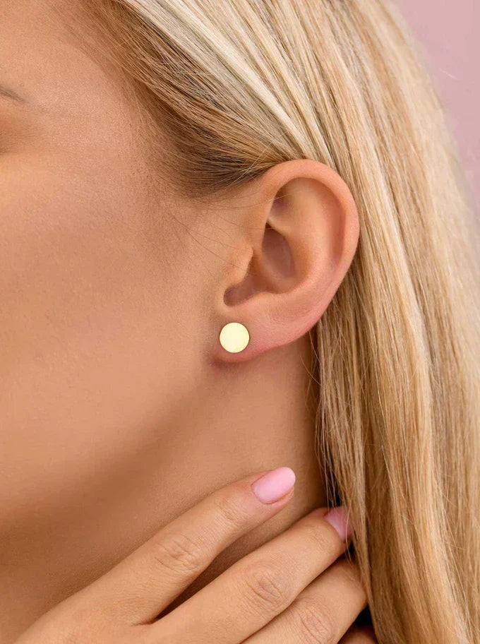 Delicate hoop earrings, made of surgical / stainless steel, gold-plated with 14-carat gold applied using the PVD method - currently the most durable method of coating. Earring diameter: approx. 0.8 cm. Clasp type: pin. Color: gold. A perfect addition to everyday styling. Perfect gift idea.