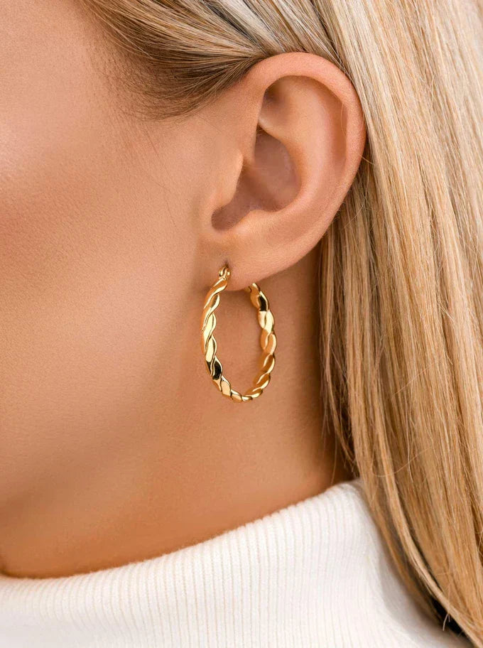 Hoop earrings, made of surgical / stainless steel, gold-plated with 14-carat gold applied using the PVD method - currently the most durable coating method. Earring diameter approx. 3 cm. Clasp type: closed ear hook. Color: gold. A perfect addition to everyday styling.